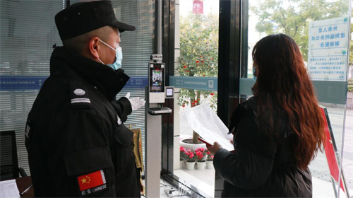 此次演練設(shè)定在上午9點(diǎn),城投公司辦公樓入口,被紅外線體溫儀檢測出一名體溫異常的辦事人員,且檢查健康碼顯示黃碼。