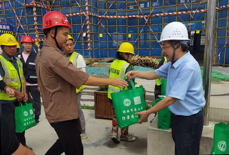 7月22日,四川省總工會黨組成員、副主席苗勇一行,赴城投公司承建的雅安市工人文化宮項(xiàng)目現(xiàn)場開展夏季“送清涼”慰問活動。雅安市委常委、統(tǒng)戰(zhàn)部部長、市總工會主席李蓉,市總工會黨組書記、常務(wù)副主席趙雅玲等陪同慰問。