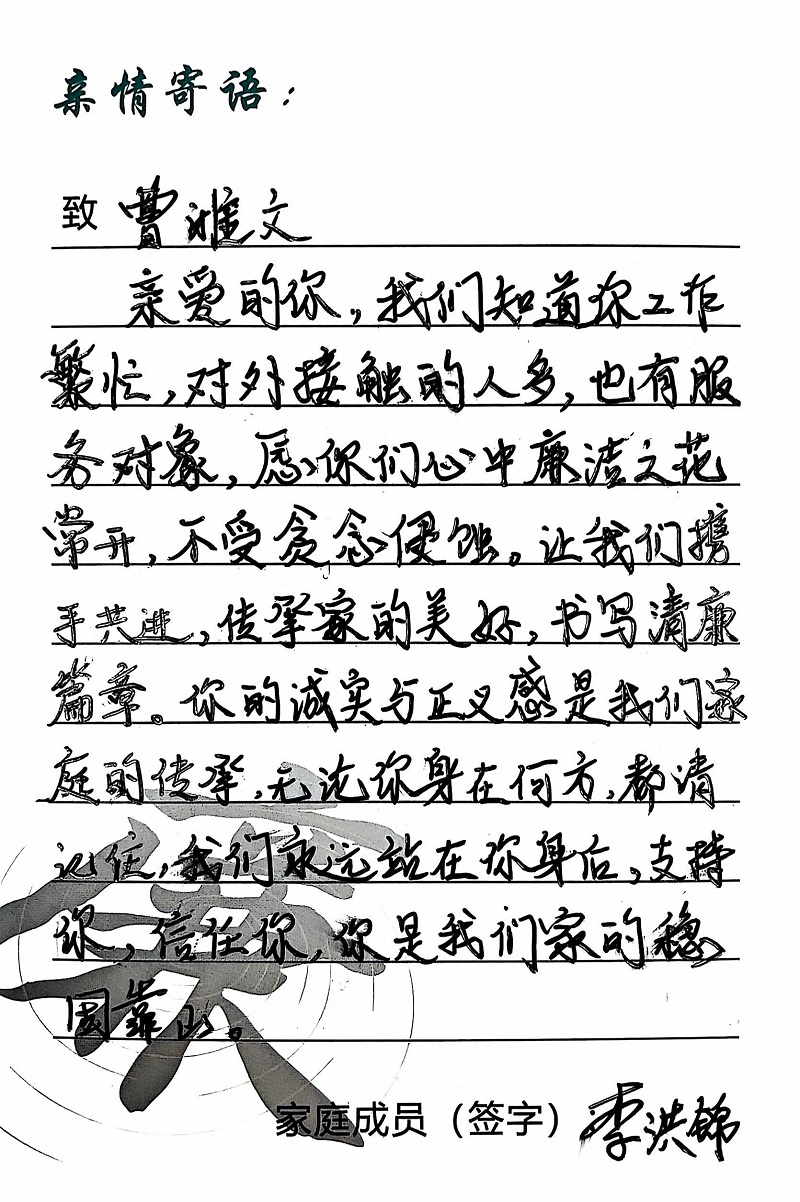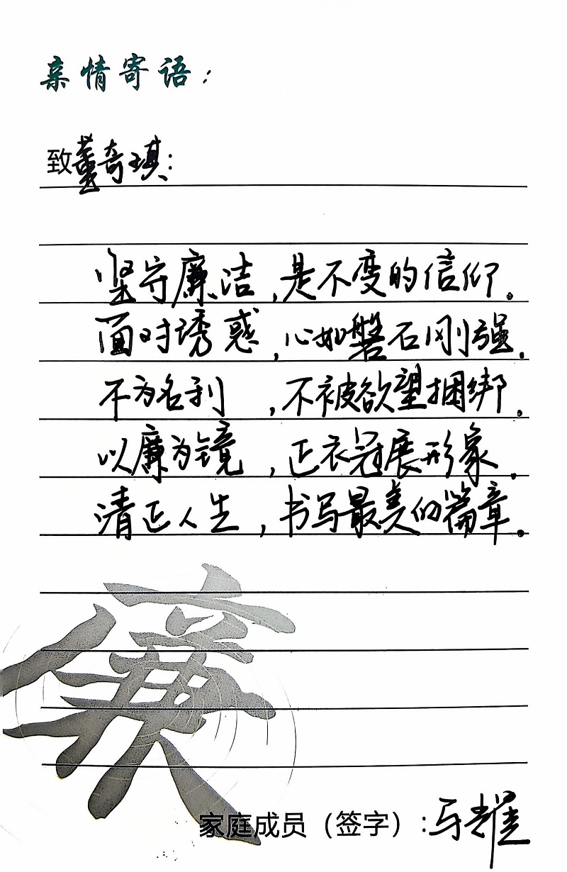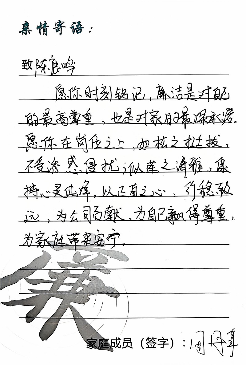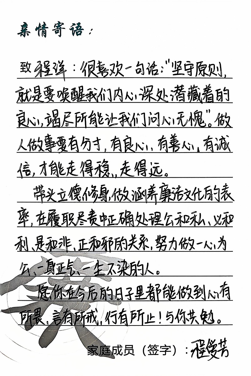 為深入學習黨的二十大精神,貫徹落實習近平總書記關于注重家庭家教家風建設的重要論述,營造公司崇廉、尚廉、踐廉、助廉的良好氛圍,城投公司組織開展了“家滿清風·廉潤城投”廉潔文化活動。活動開展以來,共征集廉政寄語210余條。經(jīng)各部門、子公司推薦,城投公司相關部門審核,評選出優(yōu)秀廉潔寄語43條,F(xiàn)將優(yōu)秀廉政寄語分批次進行展播,快來一起欣賞吧!
