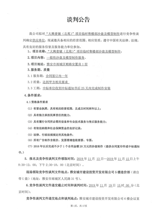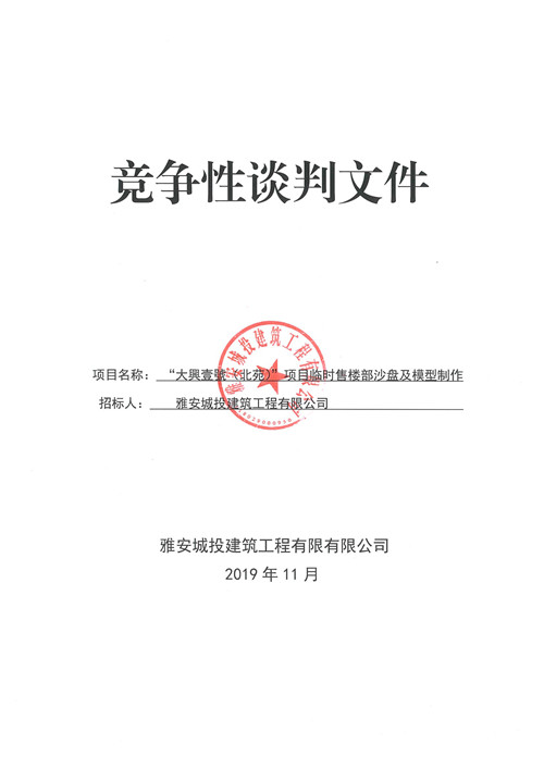 大興壹號(北苑)項(xiàng)目臨時(shí)售樓部沙盤及模型制作競爭性談判公告