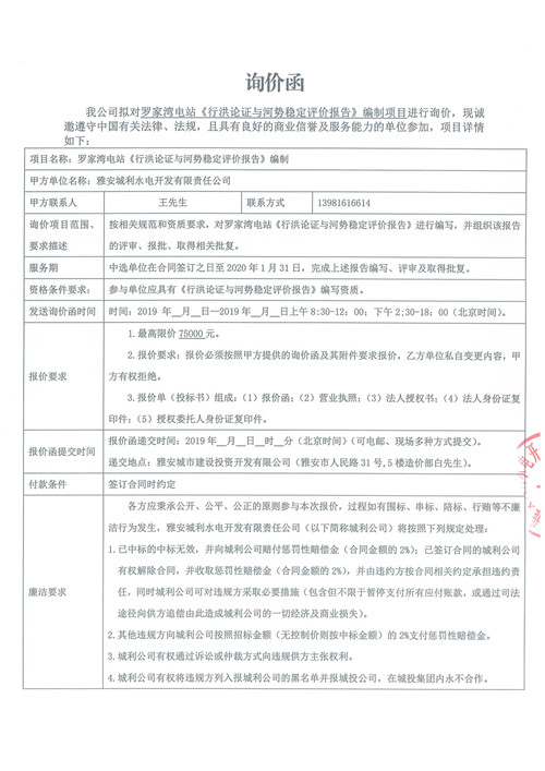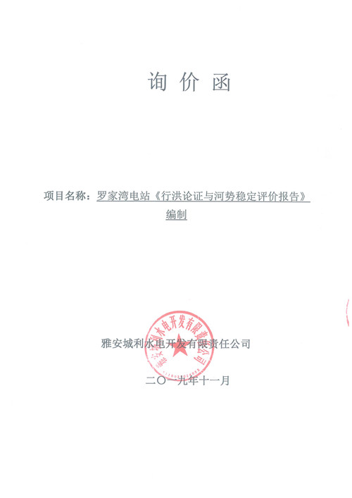 羅家灣電站《行洪論證與河勢(shì)穩(wěn)定評(píng)價(jià)報(bào)告》編制詢價(jià)函