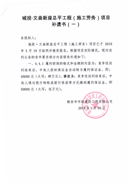 城投·文曲新座總平工程(施工勞務)競爭性談判公告補遺一