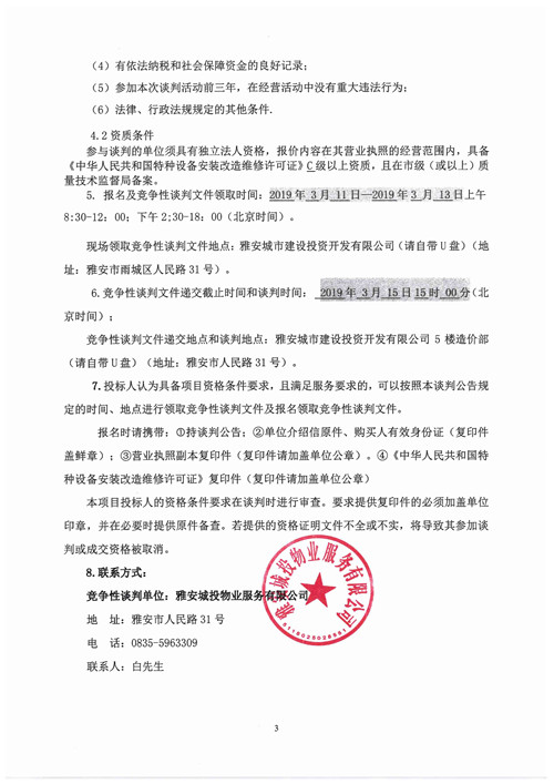 大興公租房小區(qū)電梯維保服務(wù)項目的競爭性談判公告