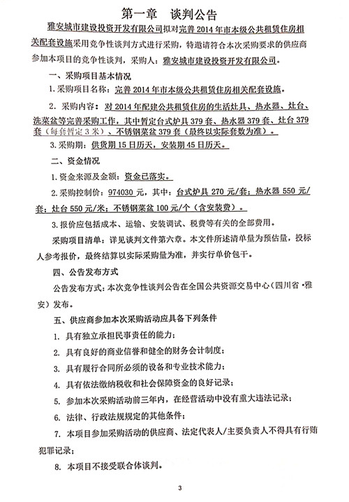 完善2014年市本級公共租賃住房相關(guān)配套設(shè)施的競爭性談判公告
