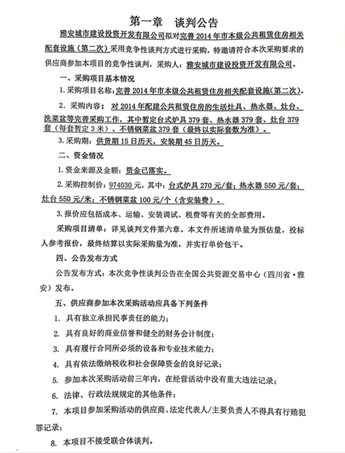完善2014年市本級(jí)公共租賃住房相關(guān)配套設(shè)施(第二次)談判公告
