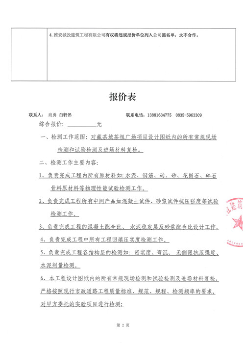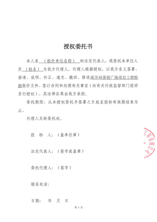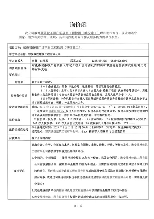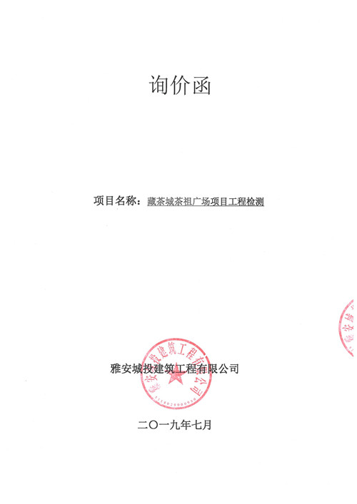 藏茶城茶祖廣場項(xiàng)目工程檢測詢價(jià)函