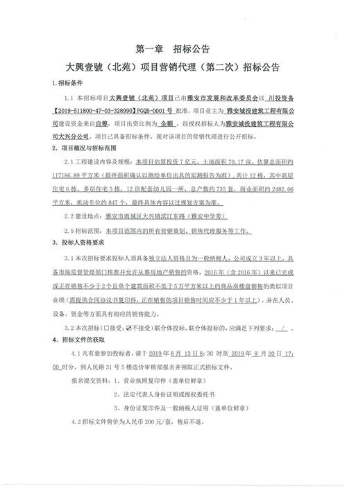 大興壹號(北苑)銷售招標(第二次)招標公告