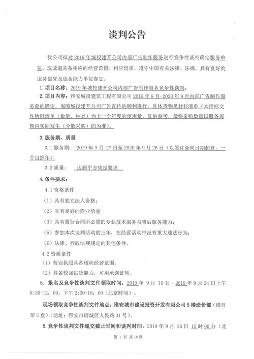 2019年城投建開(kāi)公司內(nèi)部廣告制作服務(wù)競(jìng)爭(zhēng)性談判公告