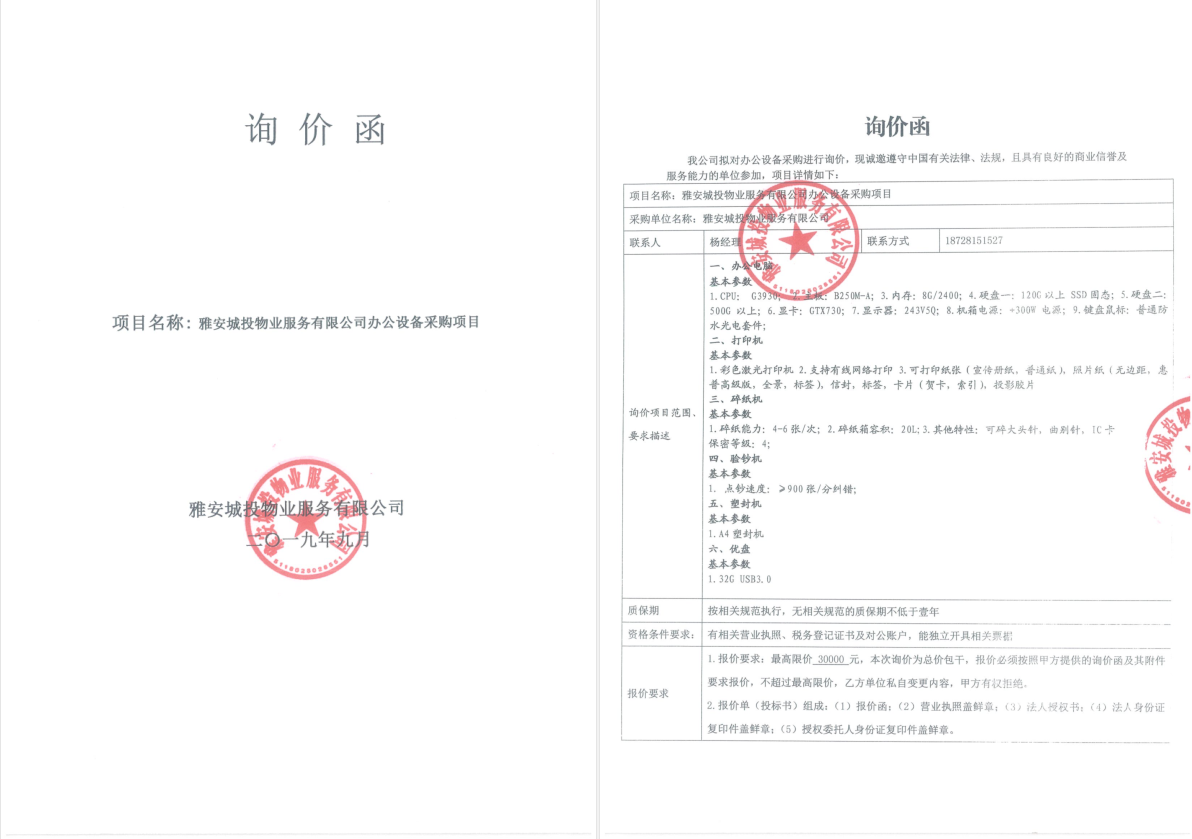 附件:雅安城投物業(yè)詢(xún)價(jià)函(辦公設(shè)備)