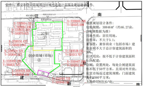 1.雅安市創(chuàng)業(yè)商城周邊區(qū)域改造設(shè)計范圍及規(guī)劃設(shè)計條件