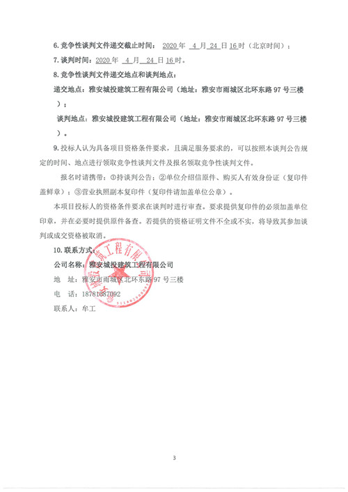 城投建工雅安市綜合訓練基地建設工程材料供應—(預制水泥制品類)競爭性談判公告