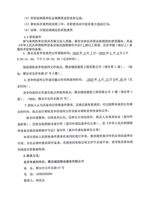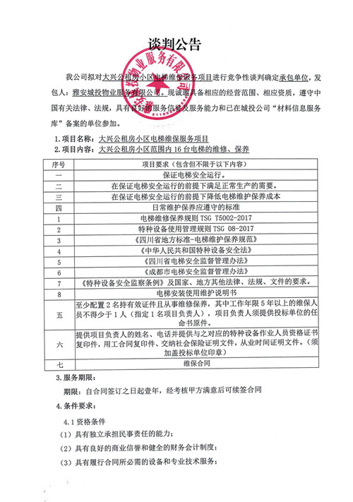 城投物業(yè)公司大興公租房小區(qū)電梯維保服務(wù)項(xiàng)目競爭性談判公告