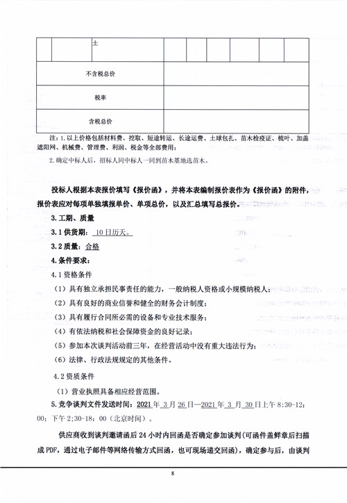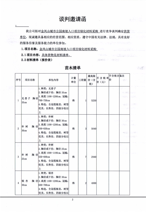 金鳳山城市公園南坡入口項目綠化材料采購談判邀請函