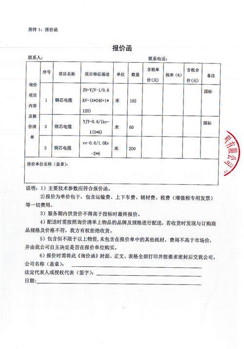 雅安市生活垃圾收轉(zhuǎn)運體系建設(shè)姚橋垃圾壓縮中轉(zhuǎn)站項目電纜采購詢價函
