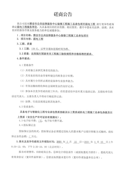 城投建工公司雅安市公共法律服務(wù)中心裝修工程施工總承包項(xiàng)目弱電工程競爭性磋商公告
