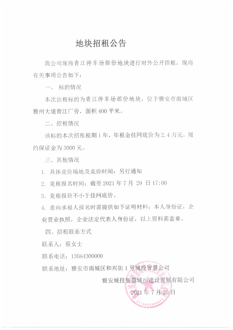 城投智慧公司青江停車場部分地塊招標(biāo)公告(400㎡)