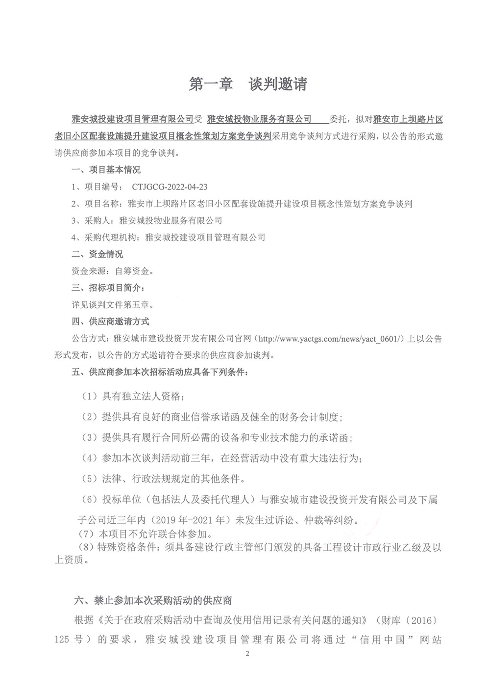 雅安市上壩路片區(qū)老舊小區(qū)配套設(shè)施提示建設(shè)項(xiàng)目概念性策劃方案競(jìng)爭(zhēng)談判邀請(qǐng)
