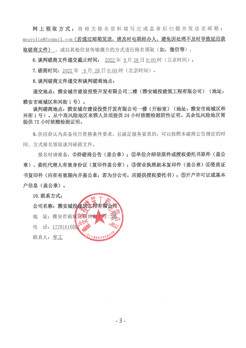 蒙頂壹號項目主樓及北側大門等幕墻工程談判磋商公告