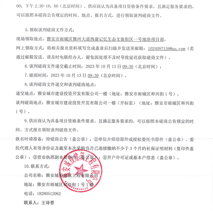 雅安市西康記憶生態(tài)文旅街區(qū)項目一號地塊項目景觀小品雕塑采購(第二次)談判磋商公告