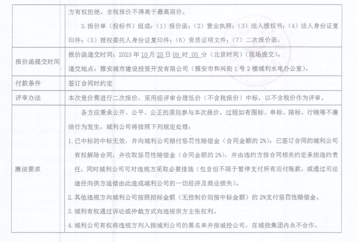 雅安城利水電公司35KV禁飛線雙回全線巡查工程(第二次)競價公告