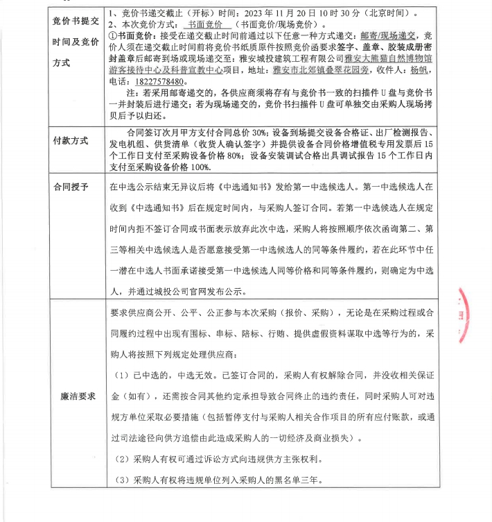 雅安大熊貓自然博物館游客接待中心及科普宣教中心項(xiàng)目柴油發(fā)電機(jī)組采購(gòu)競(jìng)價(jià)公告