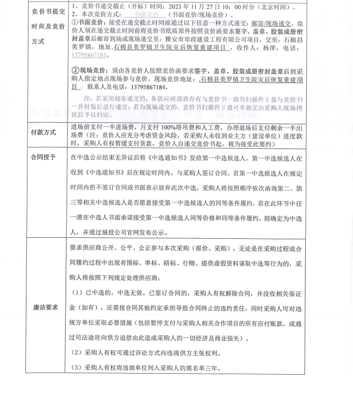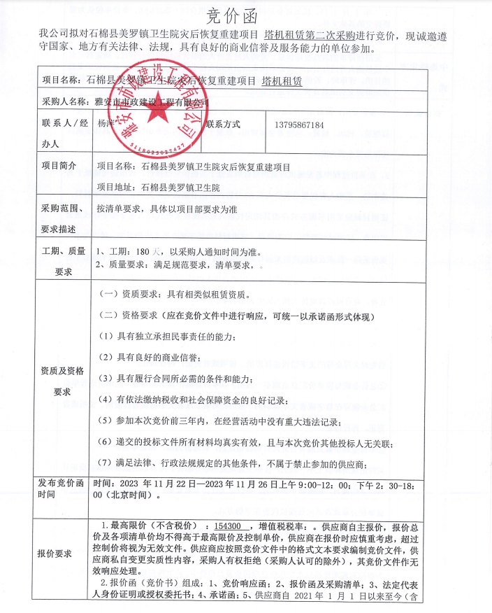 石棉縣美羅鎮(zhèn)衛(wèi)生院災(zāi)后恢復(fù)重建項(xiàng)目塔機(jī)租賃(第二次)采購競(jìng)價(jià)公告