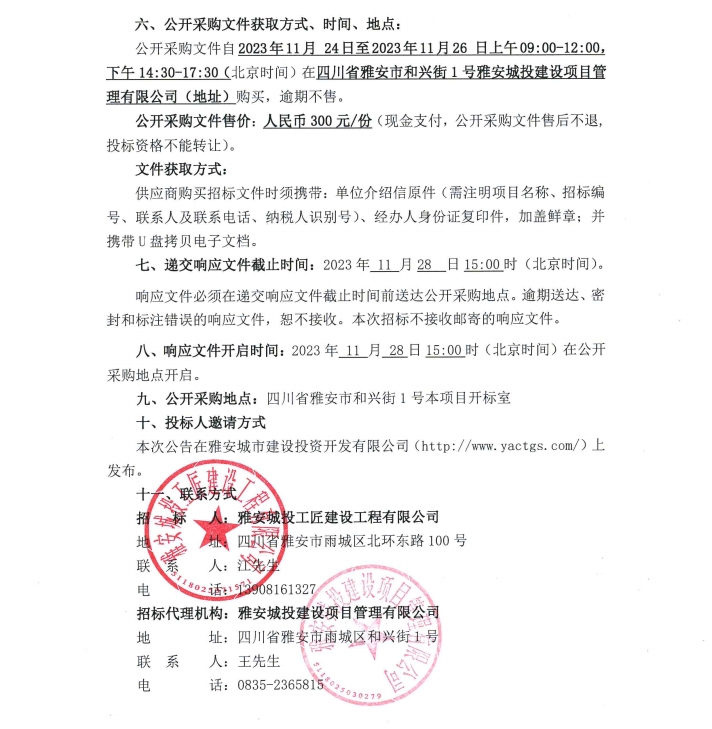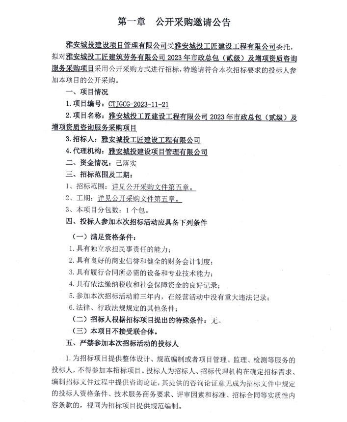 雅安城投工匠建設(shè)工程有限公司2023年市政總包(貳級)及增項(xiàng)資質(zhì)咨詢服務(wù)采購項(xiàng)目公開采購邀請公告