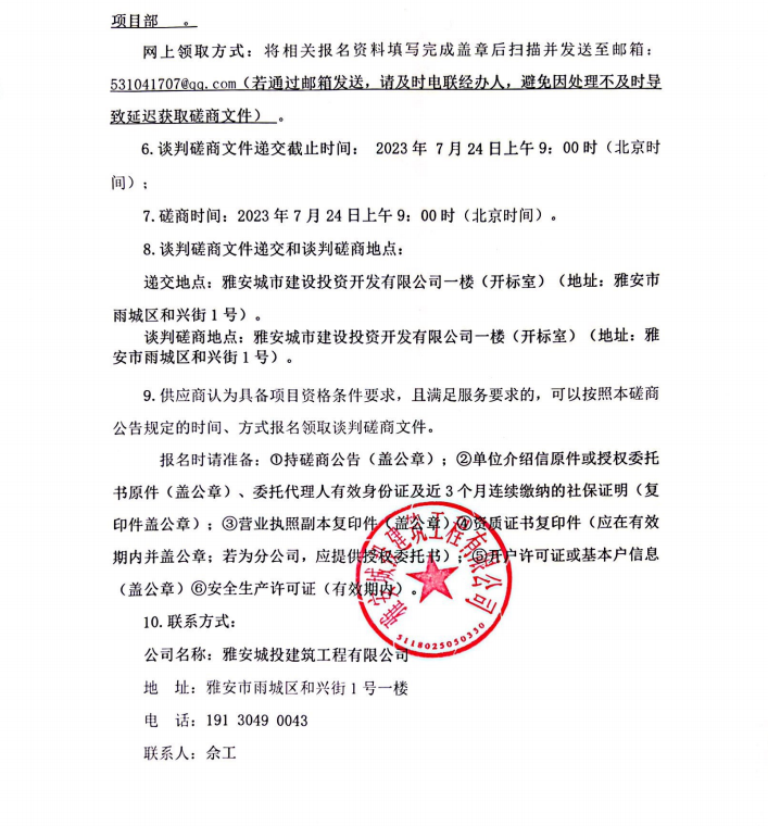 四川省區(qū)域應(yīng)急救援雅安基地項目雨棚、門廳吊頂、車道雨棚專業(yè)分包談判磋商公告