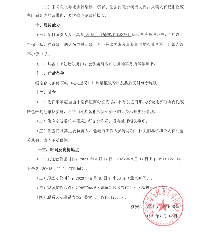 市政公司增值稅清理專(zhuān)項(xiàng)服務(wù)采購(gòu)需求書(shū)