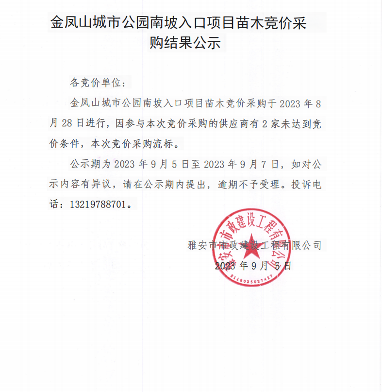 金鳳山城市公園南坡入口項目苗木采購競價采購結果公示