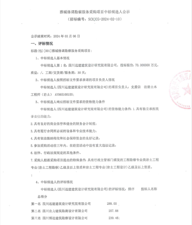 雅城格調(diào)堪察服務(wù)采購項目中標(biāo)候選人公示