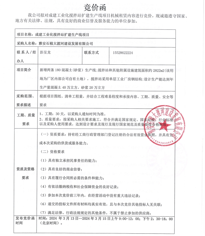 成建工業(yè)化攪拌站擴(kuò)建生產(chǎn)線項(xiàng)目機(jī)械租賃內(nèi)容競(jìng)價(jià)公告