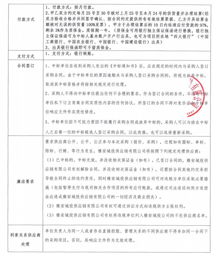 雅安城投供應(yīng)鏈有限公司電線電纜采購競價(jià)公告