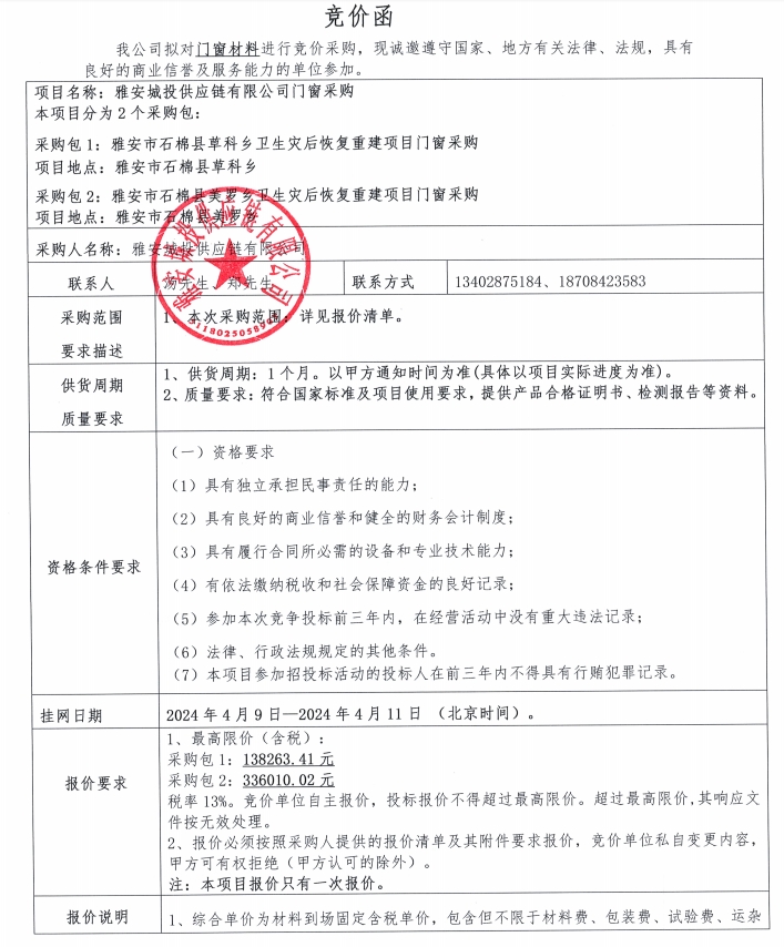 附件1:響應(yīng)文件格式-雅安城投供應(yīng)鏈有限公司門窗采購