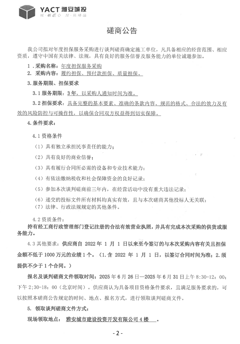 年度擔(dān)保服務(wù)采購磋商公告