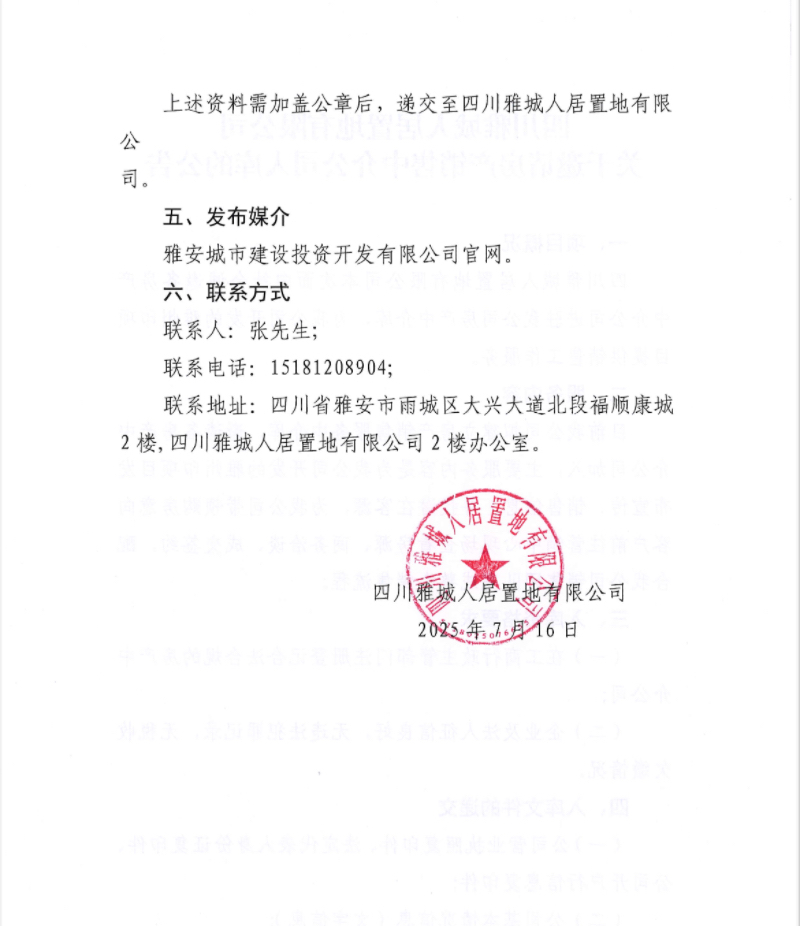 四川雅城人居置地有限公司關(guān)于邀請(qǐng)房產(chǎn)銷售中介公司入庫的公告